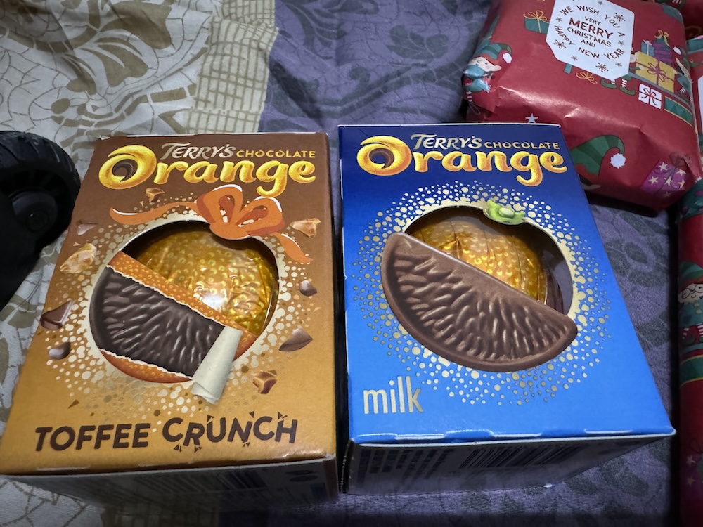 Speaking of Hannah, I had got a number of things for her for Christmas, I’d be passing these to her once in the Philippines, which will fall, just, days, after Christmas Day. My Mum also got her a little something, including the obligatory Chocolate Orange, a staple of Christmas traditions in my family. Not sure why, but, it always has been so sticks every year.