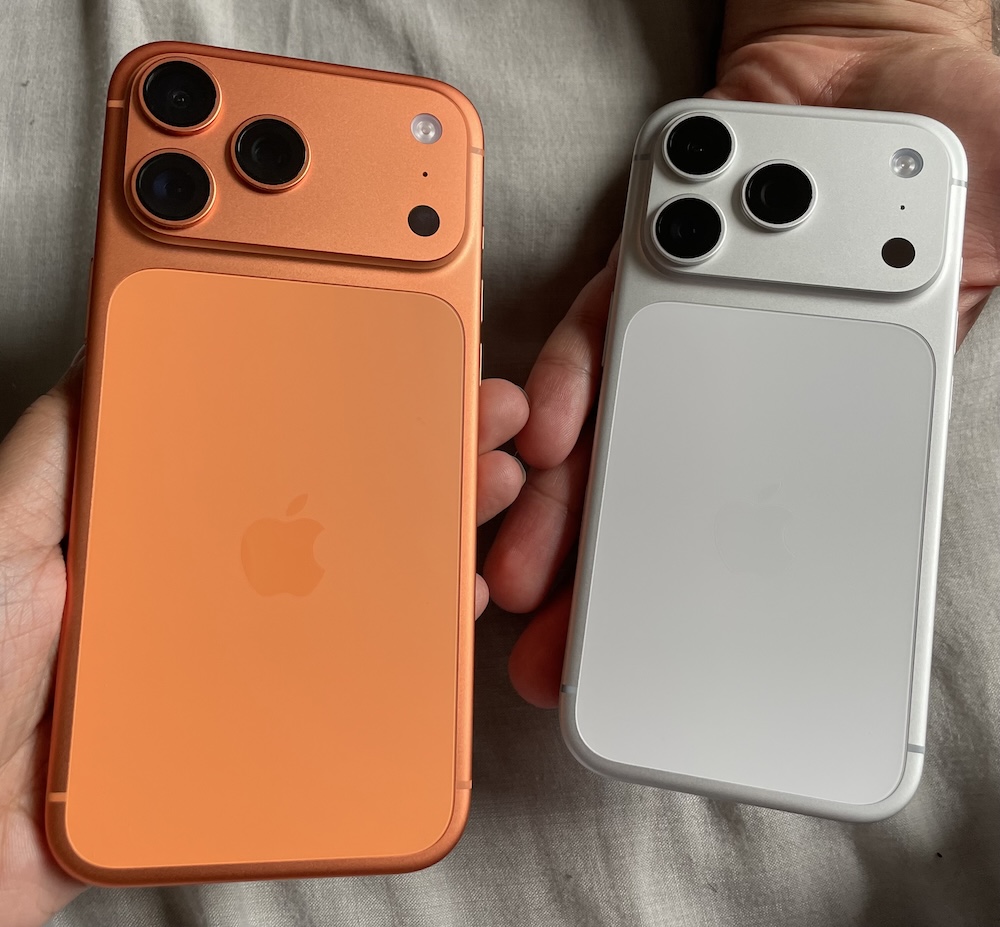 As hinted, really, at the beginning, I’ve a Silver iPhone 17 Pro, Hannah’s a Cosmic Orange iPhone 17 Pro Max. Yeah, it’s certainly a striking colour, isn’t it. Look, I still stand by my original opinion that’s it’s a disgusting colour, but I will say it looks a bit better in person. Though, I say, a bit.