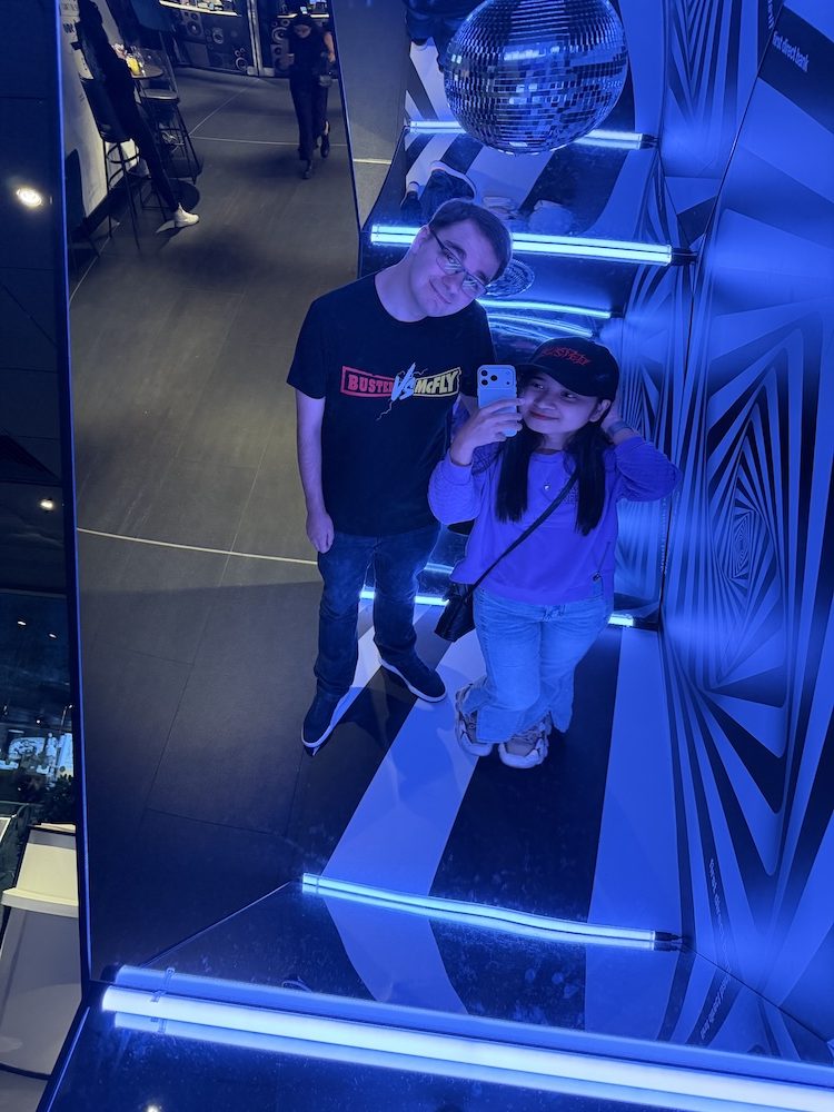 Then, before we knew it, it was time to head in. Hannah, of course, wanted even more Selfies and Photos at this area, which were taken. Then we headed up… to then head back down again. Yeah, there was something I just felt we had to do, get some Merchandise. Initially, Hannah wanted one of the bandanas shown in the VIP room… none left, so, we went for something far more simple.