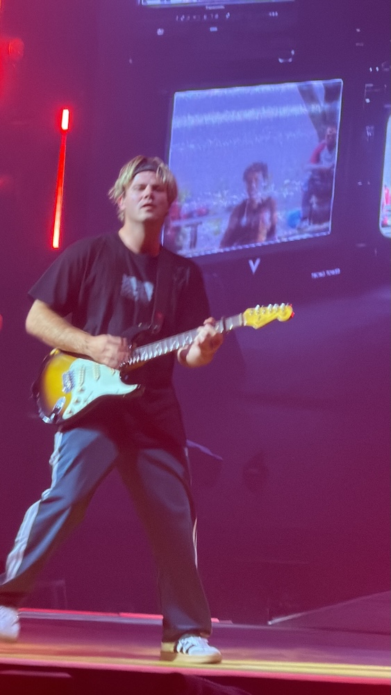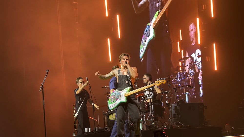 Up first was McFly. You can probably get an idea of just how close we were to the Main stage, at this point. A small mosh-pit area was in front of us, which I was never going to use, so, we were as close as you could get. Plus, the new iPhone 17 Pro zoom lens was HUGE at taking crystal clear shots and videos. We’ve A LOT of videos. McFly kicked off with “Where Did All the Guitars Go?”, and, I will say, it was quite an adjustment getting used to the noise. They sounded great, though. Tom was sounding on point, Danny was bellowing as always, with Dougie teasing the Crowd. Harry was there, too…