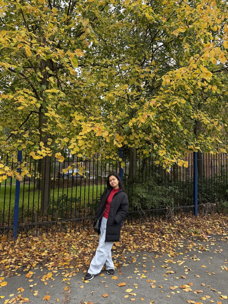 What better way to end the blog with a bit of British appreciation from Hannah. The first time Hannah arrived in the UK, was the backend of Autumn, and it’s always been a favourite of hers. Not sure if it’s the leaves falling off the Trees, the general colours, or, what, but, we’re not beginning to see the Autumn ways taking shape and she’s already all-in. Ohh look, a Tree, picture me… ohh look, something else Autumn-ey, photo.