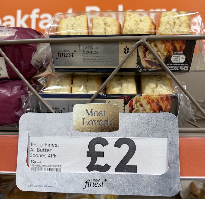 This is mostly a strike at Lee. But, whenever Cleck Tesco hasn’t had the Scones that I like, the excuse that Lee has always come up with is that no one buys them. Well, let me tell you this, if that is the case, WHY-OH-WHY are they LITERALLY branded “Most Loved” in your Store now. Everyone knows they’re much better without the disgusting Sultanas. Now we know they’re most loved, can we now bring them back to the £1 they used to be, thank you very much! It’s like Terry’s Chocolate Oranges, how are they now £2. Even more in Sainsbury’s, they’re cheeky enough to sell them for £2.50. Absolutely unforgivable!