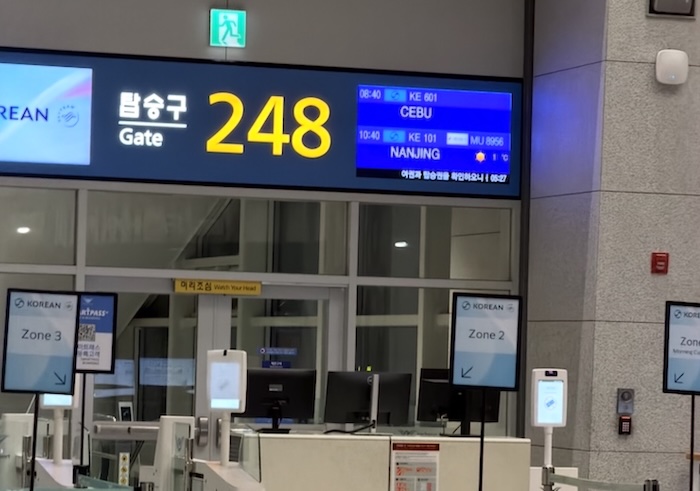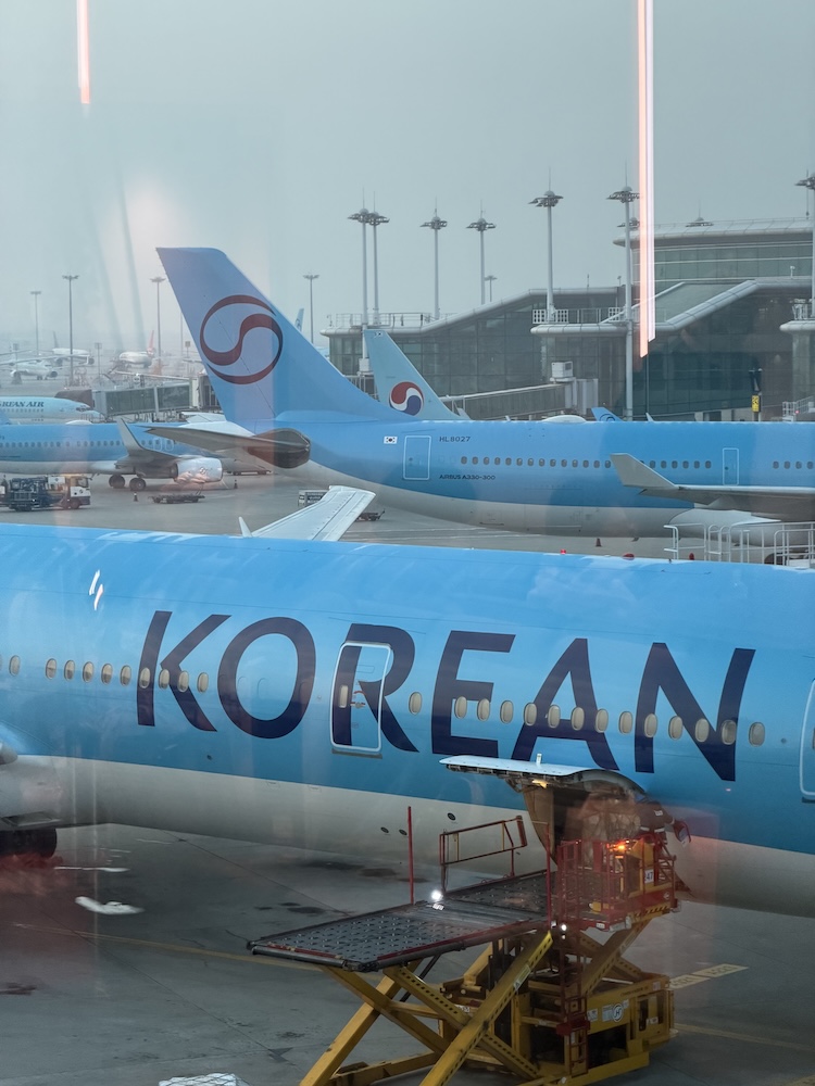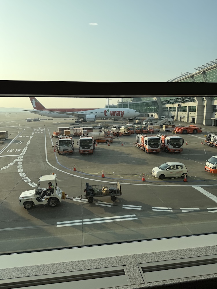 As I said earlier, I still find it completely bizarre that an International Airport shuts at night, basically. But, it was just as interesting watching it wake up. The stores opening up, the Staff all arriving, and the place beginning to get a lot more noisier. Crazy times. Eventually, after all these mayhem, staff from Korean Air began occupying the Gate. As the Flight was, obviously, not meant to still be here, some things had been switched around, meaning we’d need a whole new Boarding Pass. A simple queue, beep-beep, done, for everyone. Shouldn’t take too long, right? … Yeah, we left late because people can’t queue correctly and, for some dumb reason, they picked the slowest most incompetent member of staff to do every-single passenger… alone. Brilliant. Once I had got mine, noticed the American couple and let them know, even though they seemed more interested in abandoning me, how very dare they… I was fine with it, but, was a bit like… OK, fine.