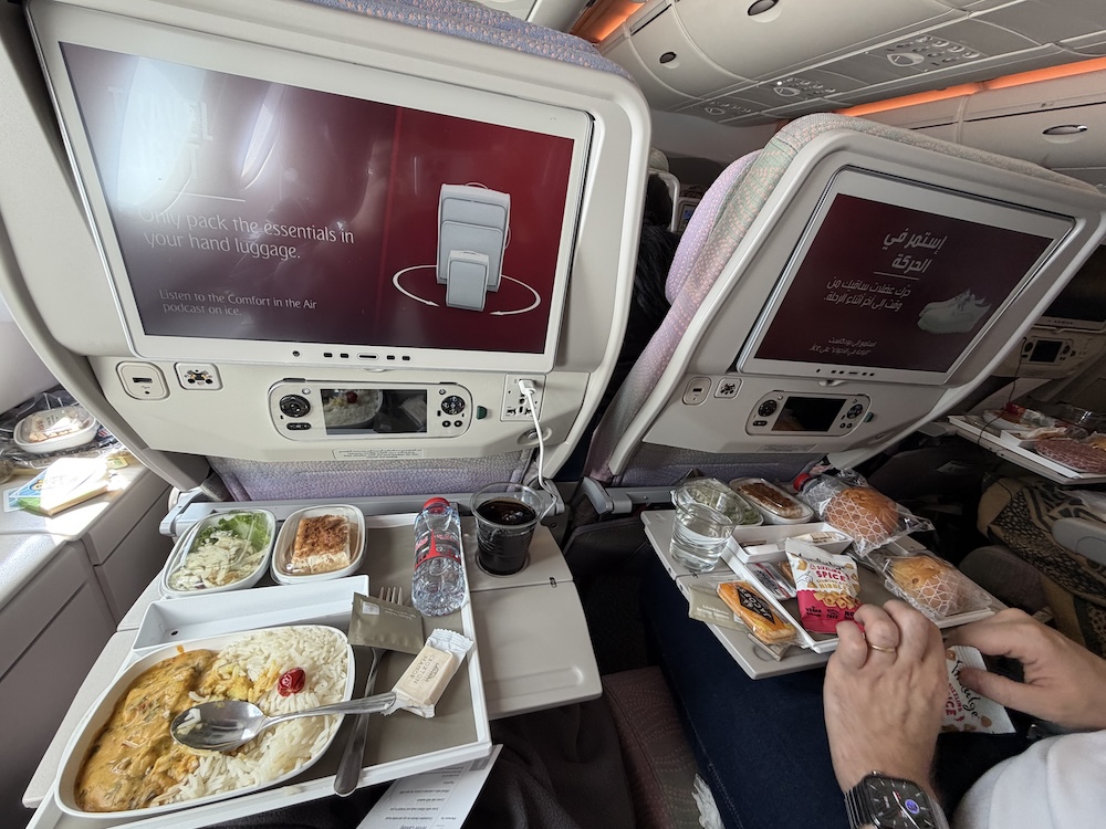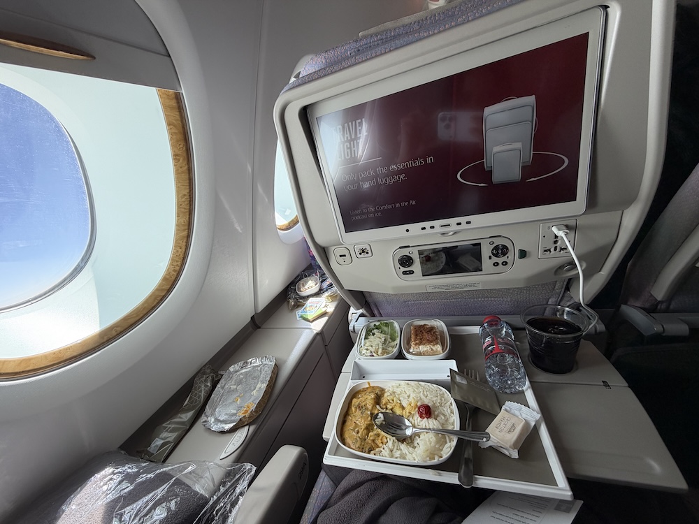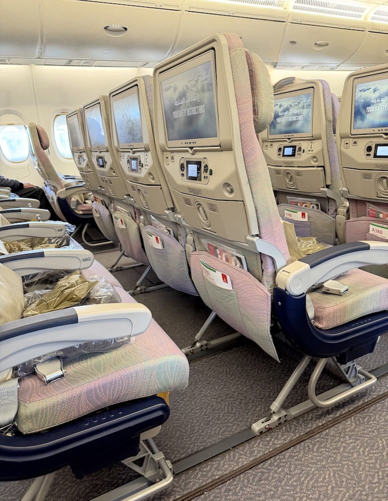 It’s funny because, this isn’t the first time I’ve made the choice to book a Seat on Emirates with 2-seats. Typically at the back, you can book Seats on the Planes that aren’t the 3-seat ones, or the 4-middle ones. But, never before have we experienced them like this. I think it’s because the last time we did, it was on the Boeing one. On the A380, we’re upstairs baby. Though, not in the Business and First Class part, sadly. I’ve always said, one time in my life, we’d proper go for it, but, knowing my luck I’d still probably not be able to sleep 😁.