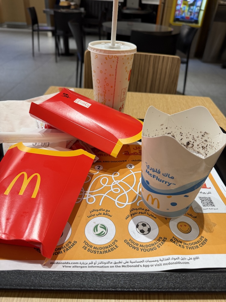 By this point, I had already promised Hannah that we’d try to find her some, more Asia inspired grub, so, as a result of this, Hannah only got an Ice Cream Cone. Yeahhh, McDonalds in Dubai have Ice Cream in a Cone. It’s crazy the amount of differences that McDonalds have around the world. For me, though, I, kept things traditional.