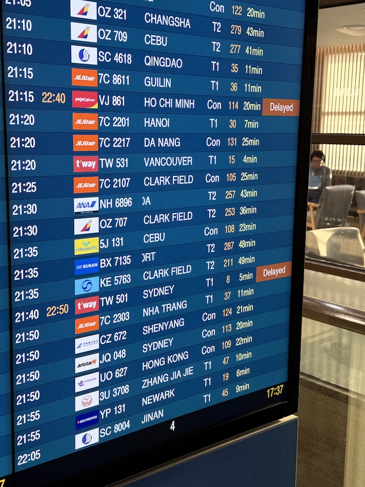 The worse thing about all of this, was, the unknown. No one knew when we would actually be able to fly again. Would it be another hour, 2, more? Who knows? Well, eventually, we did and just look at those differences. I was set to arrive in the Philippines AN ENTIRE DAY later than originally planned. Yep, we’d be 40+ hours into aviation hell an zero sleep before even contemplating seeing the Philippines.