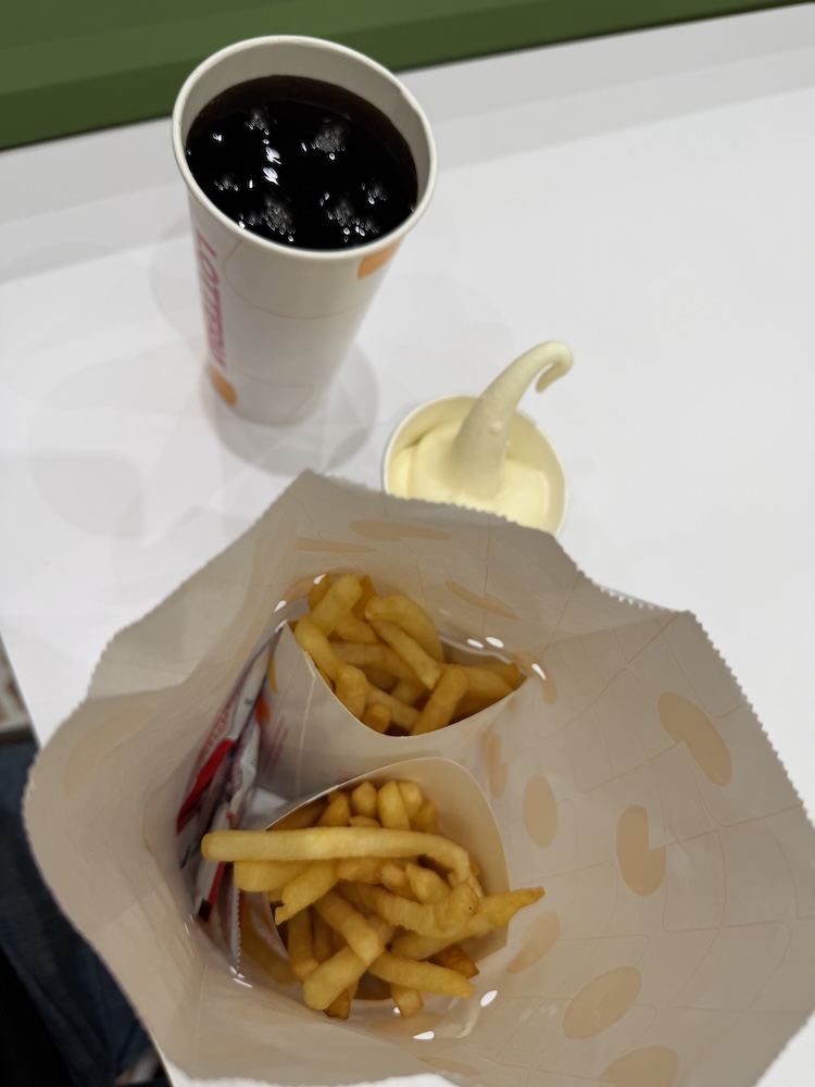 I saw a symbol for Fries, Ice Cream, Burger and Drinks, and was thinking, yep, we can get something here. Only problem was figuring out how the heck we ordered from it. Like most Restaurants these days, you order through a Screen, then collect. But, I was trying to pay through this Voucher code. Eventually, as I, somehow, gain the ability to speak to people when I’m in a state of unknown, was able to figure out that you order to pay at the Counter, then they scan your voucher. Incredibly, my ₩20,000 [about £10] was barely used, but, obviously, no change, it was one-time use. Surprisingly I got 2 Large Fries, a Large Pepsi, an Ice Cream for barely ₩8,000, which is insanely cheap. I only got 2 Fries cos I felt like, why not, it’s free. Verdict? Well, the Fries were actually pretty decent, but, don’t know if that’s the extreme hunger speaking, although the Ice Cream was awful. The Pepsi was delicious, none of that Sugar Tax crap here.
