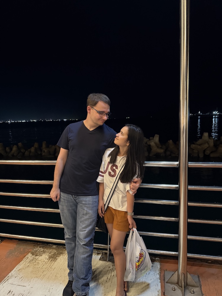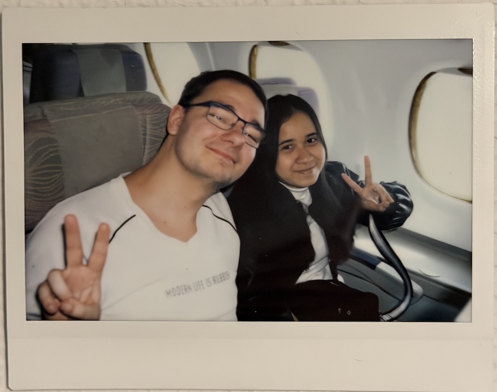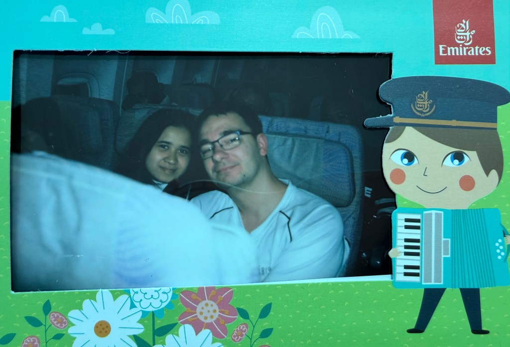 Shortly before we began descending in to the Philippines, on the Clark flight, though, Hannah decided to get our picture taking by Emirates. We would do this for both Flights coming home. Admittedly, this one wasn’t as good thanks to our other guest sleeping on the window seat, and, not helped by the Cabin crew rushing it, ruining it, by it losing focus on the Seat in front. Ahhh amateurs.
