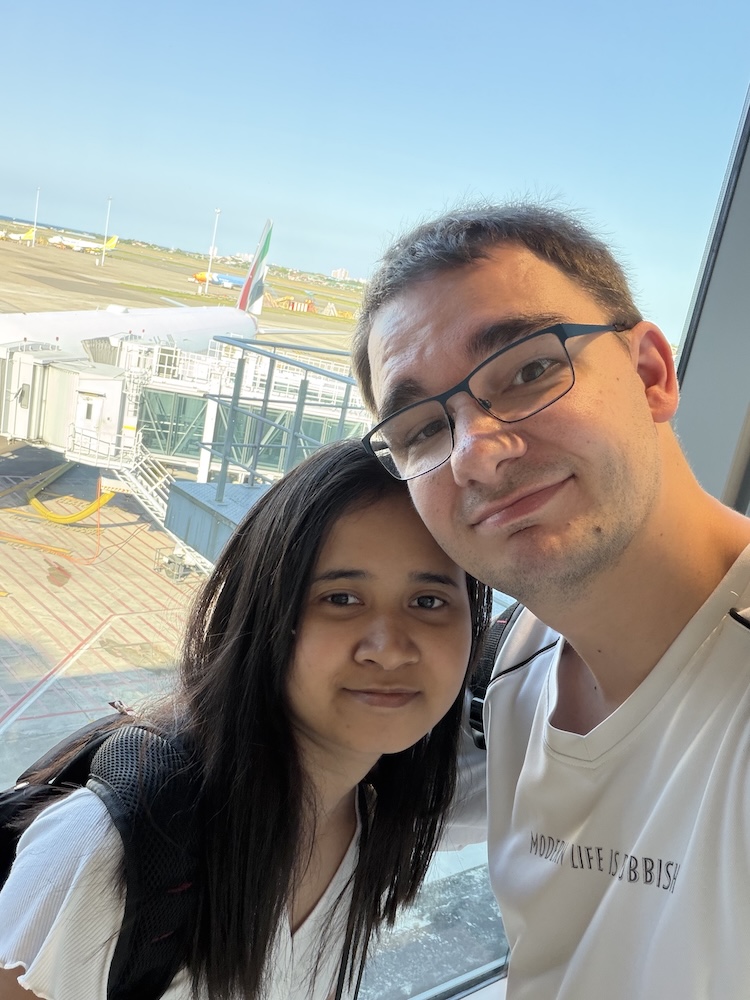 The rest of the flight consisted of Hannah watching the sequel to that rather weird Horror movie I was forced through, then, after that it was just a collection of music, the odd clips I’d saved to watch on my phone and general interactions before we finally made it to the UK. Of course, this is Hannah, this involved a billion selfies, as well as this, a much better pic taken by Emirates. This time, just us. Then, thankfully, our journey was over, we had landed in the UK!!!