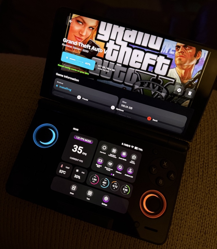 The only hardware that feels a bit weak on the AYN Thor, apart from the lack of any Cameras, are the Speakers. The OLED screens are amazing, top even runs 120Hz, the buttons feel incredibly premium, I’d argue some of the best D-Pad controls I’ve ever used, with LED lights, all in a premium glass and plastic feel. But, when it comes to the sound, things get a bit weak. Luckily, you’ve Bluetooth, USB display out, or a 3.5mm headphone jack to get around this, but, the Speakers are pretty bad.