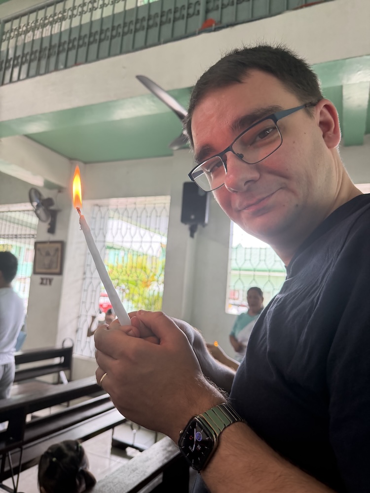 The day started rather, annoying, initially, as, the time was completely wrong we were told, by a whole hour. So, we woke up really early …for nothing. This led to a trip to the local 7eleven where I discovered something… Maltesters are AWFUL in the Philippines! No idea why, but, geez, I had to throw them all away. Had a disgusting Hotdog there, too, so, that was successful. In the end, the Hotdog was, for the most part, given to a wild Dog that Hannah was feeling sorry for. Then, after that excitement, it was back to Church.